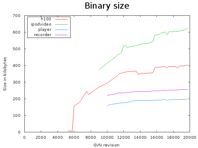 If you want to help do these builds, download binsize-client.sh and run it (something like "while true; do ./binsize-client.sh; sleep 600; done" is probably a good idea). Then tell me, so I can add your IP to the server's access list. The script requires perl, netcat, git-svn (1.5) and a working set of crosscompilers.